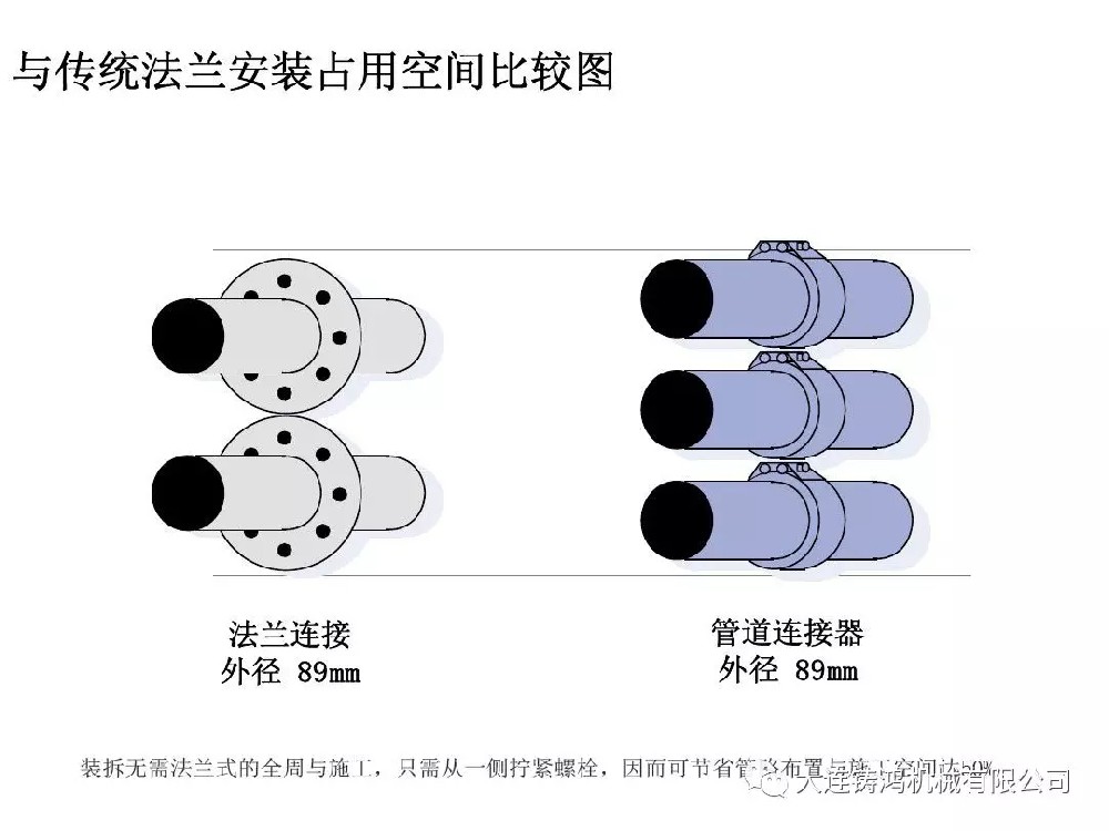 同時法蘭的缺點也比較明顯,所以承載人們智慧的結(jié)晶而改良出的產(chǎn)品管道連接器就誕生了,管道連接器保留了法蘭的特點同時對不足處進行了改良,其外殼整體也采用更為耐用的不銹鋼,那么管道連接器到底有哪些特點呢?下面我們就一起來看看: