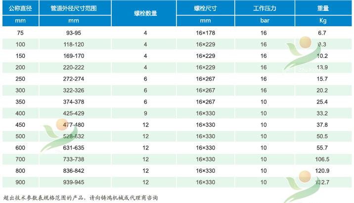 *適用于公稱(chēng)直徑《945mm的幾乎所有等級(jí)和品牌的鑄鐵管、球墨鑄鐵管道