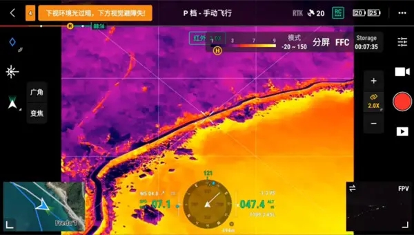 供熱管網(wǎng)在整個(gè)供熱系統(tǒng)中具有重要的地位,面對(duì)龐大的供熱管網(wǎng),管網(wǎng)泄漏普查中傳統(tǒng)人工巡檢方式效率低、反應(yīng)慢、失誤多。紅外熱成像關(guān)注的是熱源,而不是可見(jiàn)光,可以拍攝設(shè)備的過(guò)熱點(diǎn)、建筑物熱量流失位置。對(duì)于直埋供熱管道,通過(guò)紅外熱成像儀航拍,得到直埋供熱管道上方地面的熱圖像,從而監(jiān)測(cè)管道的完好程度,快速篩查疑似泄漏點(diǎn),降低水耗損失及運(yùn)行風(fēng)險(xiǎn)。無(wú)人機(jī)搭載紅外熱成像儀的巡檢方式靈活機(jī)動(dòng),受地形影響小,大大提高了巡檢效率。