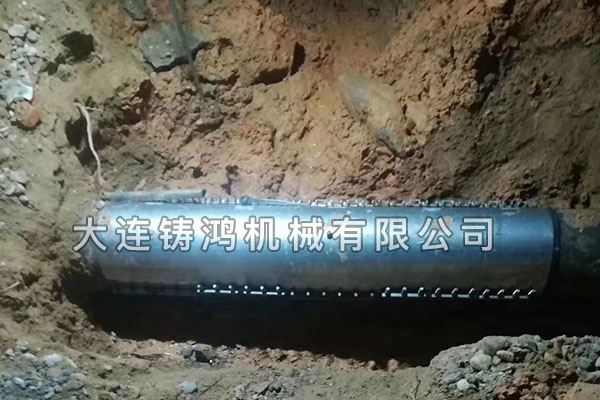南靖水務主管網(wǎng)被外力損壞發(fā)生泄漏,管道材質為鑄鐵管,管徑為DN400,裂縫長度為2米,管道發(fā)生變形,使用萬能片修補器緊急拼接管徑和長度,拼接長度2.5米。半個小時完成安裝,確定市民正常通水。