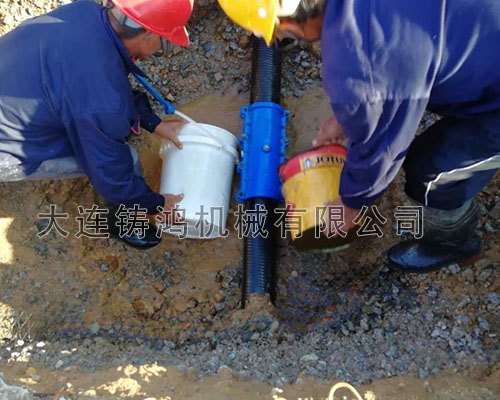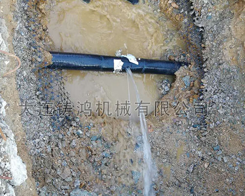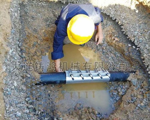 山東青島某水務(wù)非標(biāo)通水管嚴(yán)重變形,變形長(zhǎng)度為300mm,之前使用鑄鐵哈夫節(jié)進(jìn)行堵漏,但是堵漏效果不好,安裝后依然發(fā)生漏水,現(xiàn)在改用“鑄鴻”板式修補(bǔ)器進(jìn)行修復(fù),管道堵漏圓滿成功。