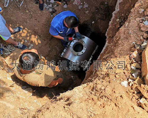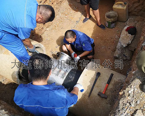 大連港一處球墨鑄鐵管需要分流,DN500的管徑分DN200的小管,帶法蘭盤,管道壓力為10公斤,采用 “鑄鴻”多功能分流三通進(jìn)行分流。